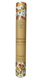 - Pakke med 5 stk. lange og 5 stk. korte sugerør i rustfritt stål. Følger med børste for rengjøring
